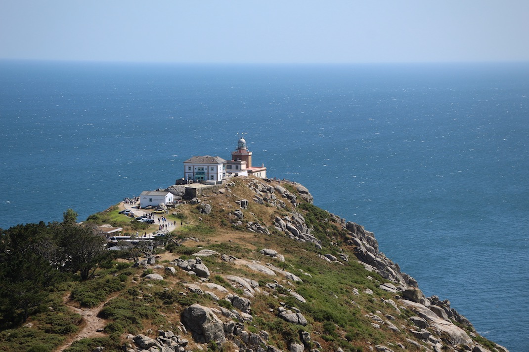 Starke Strömungen und hohe Klippen haben diesem Küstenabschnitt den Namen Costa da Morte (Todesküste) eingetragen, und glaubt man den Erzählungen der Zugewanderten, so haben die Einheimischen auch heute noch die Mentalität von Piraten. Wir erkennen Spuren davon in der teils grotesk anmutenden Baukultur und in der lieblosen Gartengestaltung. Wozu in Haus und Garten investieren, wenn stets das Meer lockt? Und die berühmteste Sehenswürdigkeit ist ohnehin nicht im Dorf zu finden, sondern ein paar Kilometer weiter westlich: Der Leuchtturm von Fisterra ist der Endpunkt des Jakobswegs und gleichzeitig das Ende von Europa. Vor uns tut sich eine unermesslich große, tiefblaue Wasserfläche auf, in der sich Sehnsüchte ebenso wie Abgründe spiegeln. Auf der anderen Seite wartet New York.