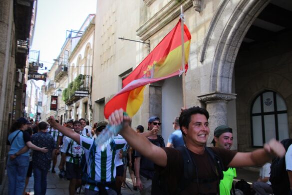 Der Jakobsweg ist ein Hype, und niemand scheint sich daran zu stören, dass die Verehrung des heiligen Jakobs historisch eng mit Fremdenfeindlichkeit und politischer Instrumentalisierung verwoben ist. Heute ist es die gnadenlose Kommerzialisierung, die man kritisieren könnte, wenn man wollte – doch anscheinend ist auch sie gottgegeben. Die Besichtigung der Kathedrale mit ihrem berühmten Weihrauchkessel (dem Botafumeiro) heben wir uns für das nächste Mal auf, da sie bereits geschlossen hat; stattdessen bestaunen wir das Spektakel in der Stadt. In den engen Gassen gibt es kaum noch ein Durchkommen, alle rauchen, trinken, reden durcheinander – kein Wunder, dass sich manche Einheimische gegen den steten Pilgerstrom wehren.